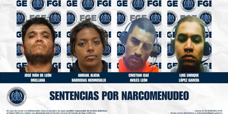 TIJUANA.- La Fiscalía General del Estado, a través de la Fiscalía Especializada en Narcomenudeo, obtuvo sentencias condenatorias contra cinco personas acusadas de delitos contra la salud en la modalidad de narcomenudeo, por la posesión de diversas sustancias ilícitas.